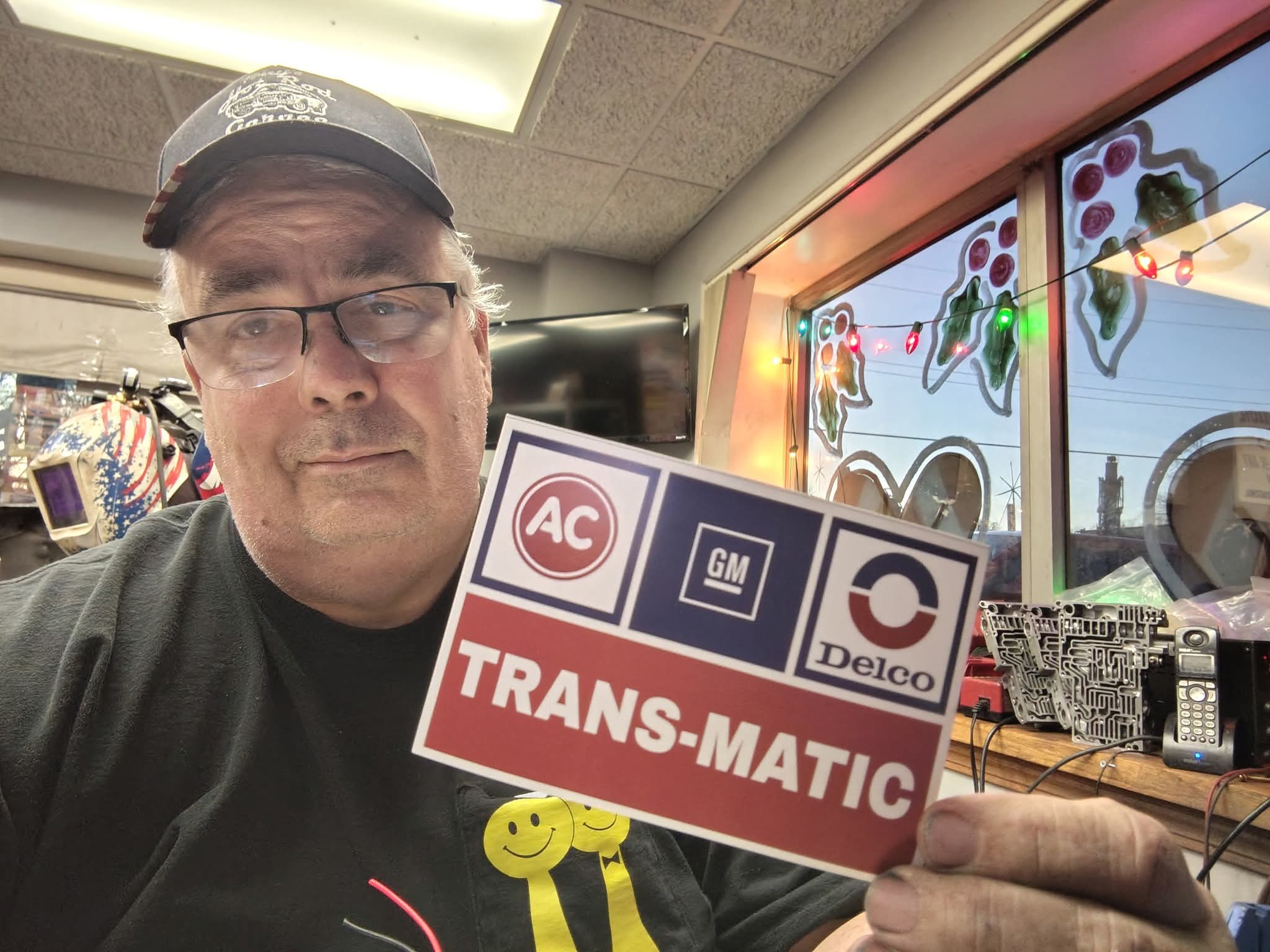 A sticker of my dad’s Transmission shop sign from the 80s Trans Matic